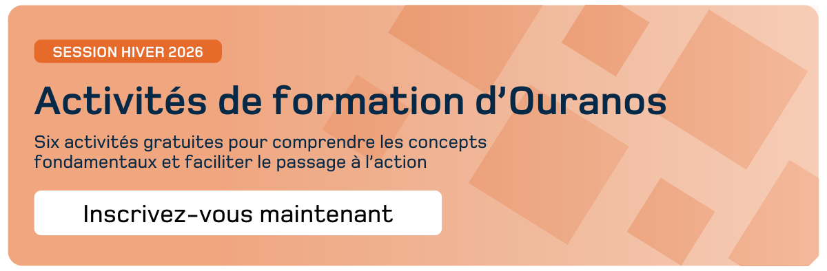 En vous abonnant à nos communications, vous recevrez directement dans votre boîte courriel les dernières actualités et publications d’Ouranos, des nouvelles sur les projets en cours, des invitations à nos événements et webinaires.