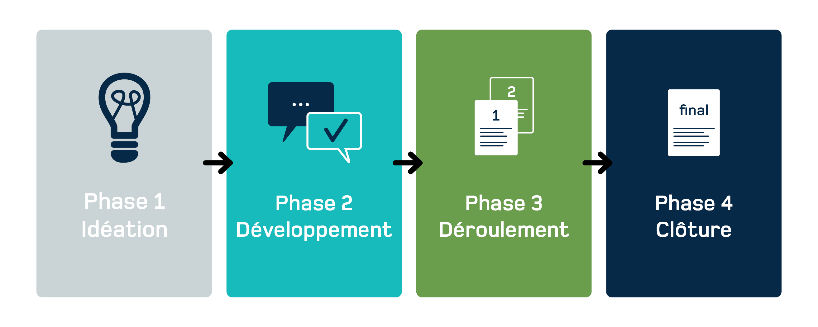 Ouranos divise le cycle de vie de ses projets de recherche en 4 grandes phases.